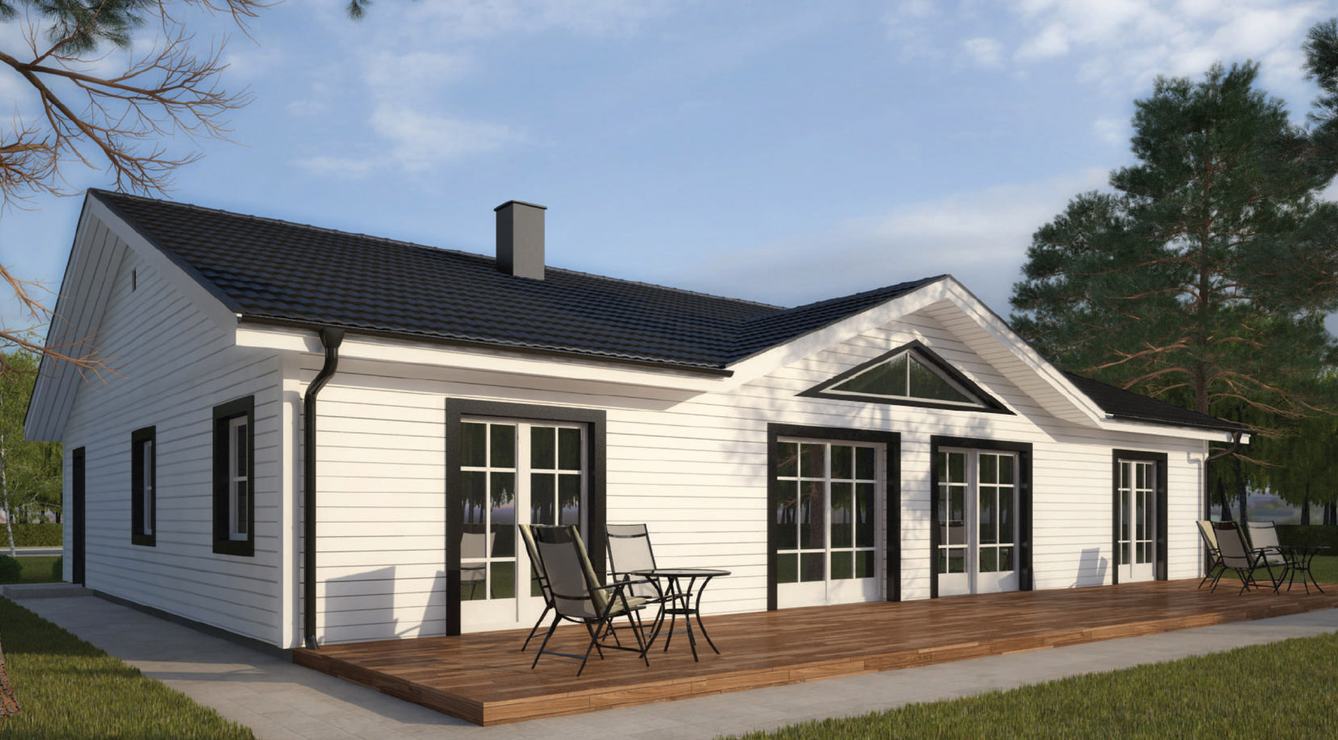 Trä framställs med hjälp av sol, luft och vatten för att skapa ett förnybart material. M-hus använder sig bara av trä från bergstrakter, där det är noga kontrollerat. Vid framställningen förbrukas mycket liten energi, som avger en väldigt liten mängd co2-gas, som är att likställa med den mängd som släpps ut om du skulle använda den som ved. Detta ger därför en neutral co2-balans i vår natur. För att bygga ett M-hus på 150 kvm krävs det endast 3 lastbilslass. Ett konventionellt hus av samma storlek, byggt av tegel, krävs det hela 20 stycken. Därför ger vårt sätt att bygga, minskade koldioxidutsläpp, i och med den minskade bränsleförbrukningen och även så ger det fler kostnadseffektiva fördelar som gynnar dig som köpare. Att bygga ett M-hus lönar sig för alla, både kund och miljö!