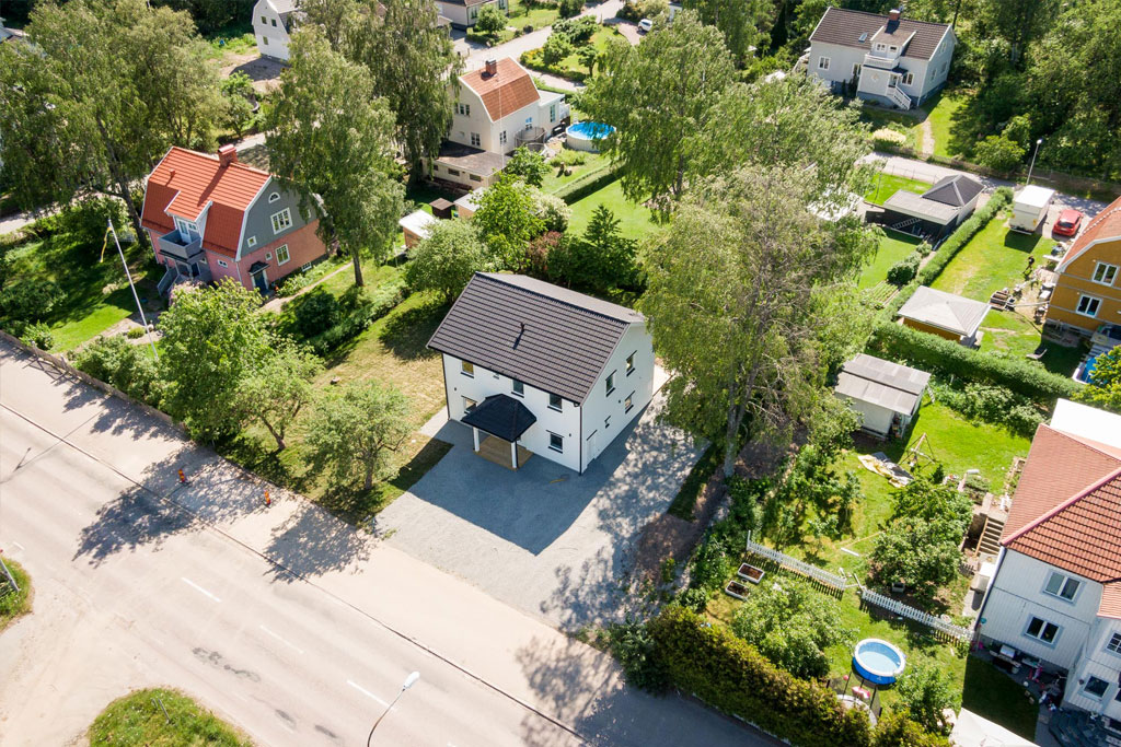 Villa Skultuna är det stora huset i det lilla formatet. Du börjar med 2 rum och kök på dryga 82 kvadratmeter, när det ska komma in övervåningen och utökas enkelt till 6 rum och kök och dubbla boytan. Övervåningen kan då bli den privata delen med sovrum och ett allrum medan entrévåningen blir platsen där man samlas och umgås.