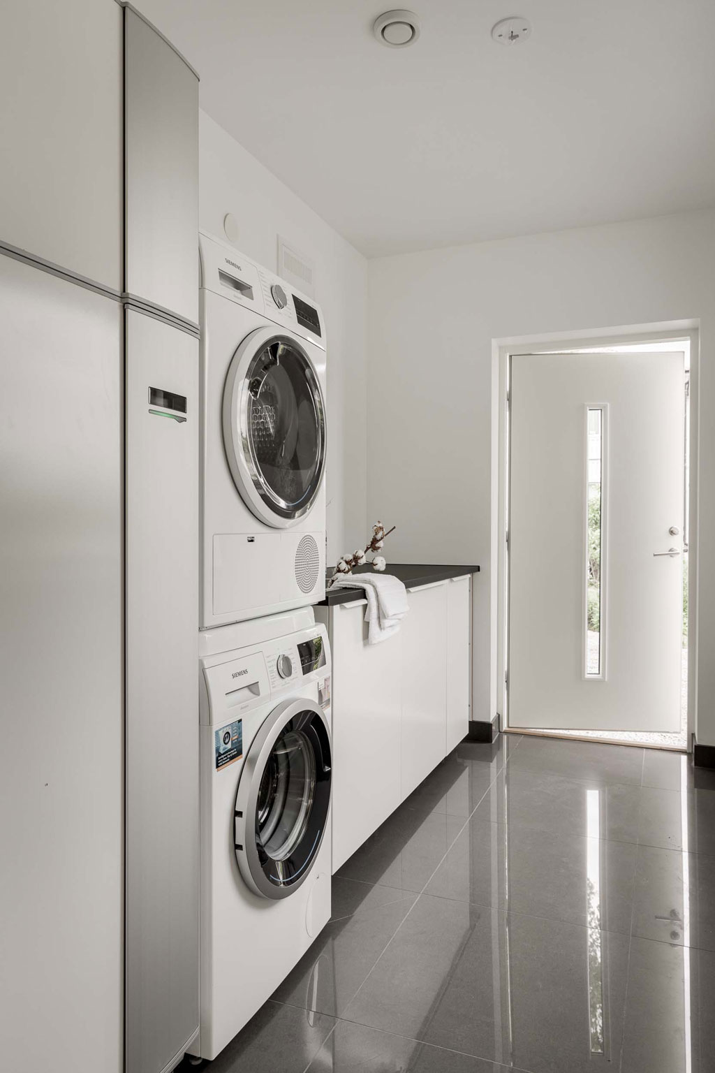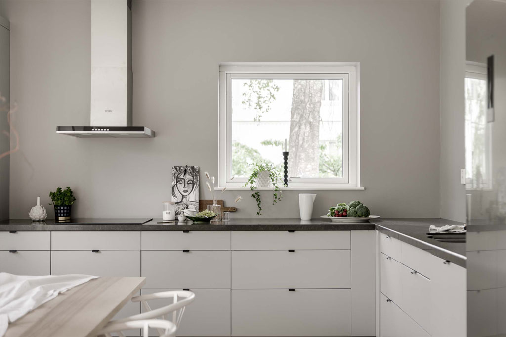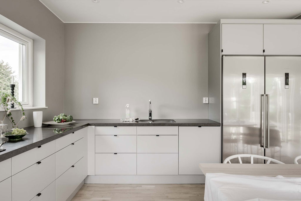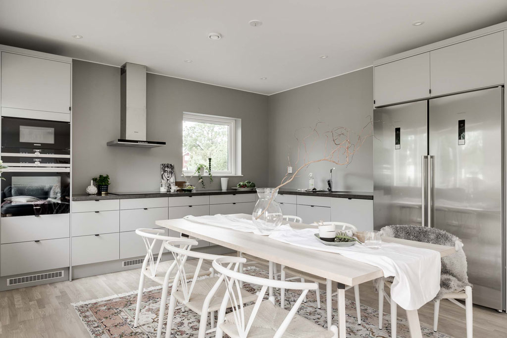 Med bardisken som binder samman kök, entré och vardagsrum blir det en stor umgängesyta där barnen kan vara i närheten för eventuell hjälp vid läxläsning, du får en överblick från köket och en naturlig plats att servera välkomstsnacks på när gästerna kommer.